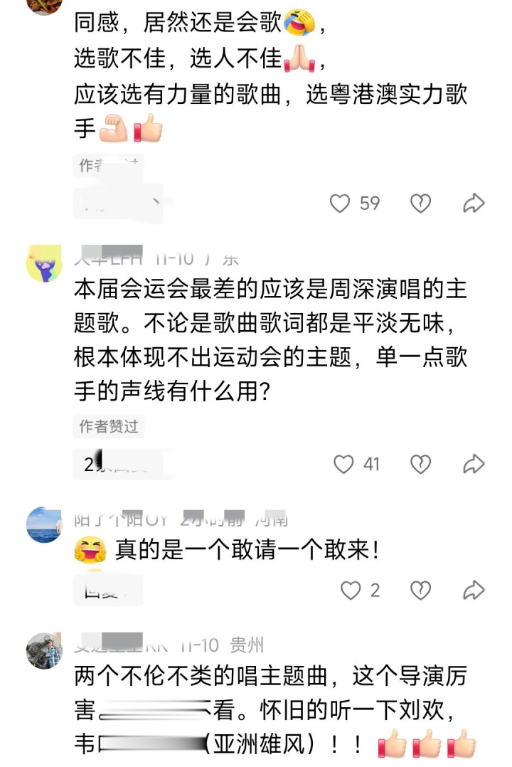 反倒是一向有实力的周深不知道是因为当晚歌曲的原因,还是实力发挥失常,许多网友表示会歌太平淡无奇,选歌不佳,选人不佳,作为会歌应该要选一首有力量的歌,真的是一个敢请一个敢来。