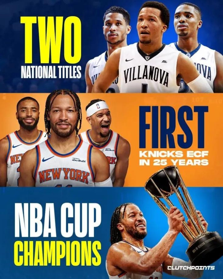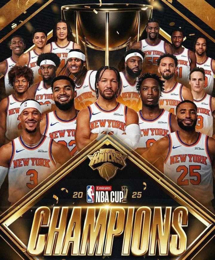 NBA杯决赛,尼克斯在不被看好情况下,124-113击败马刺拿到冠军,布伦森荣获MVP。