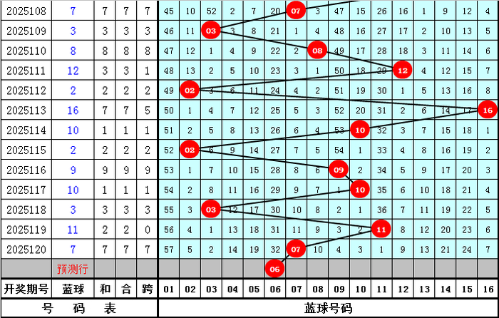 蓝球分析:上期蓝球开出奇数号码:07,最近10期蓝球号码奇偶比为4:6,前5期蓝球号码奇偶走势为:奇-偶-奇-奇-奇,根据近期蓝球奇偶走势判断,本期预计蓝球开出偶数号码。