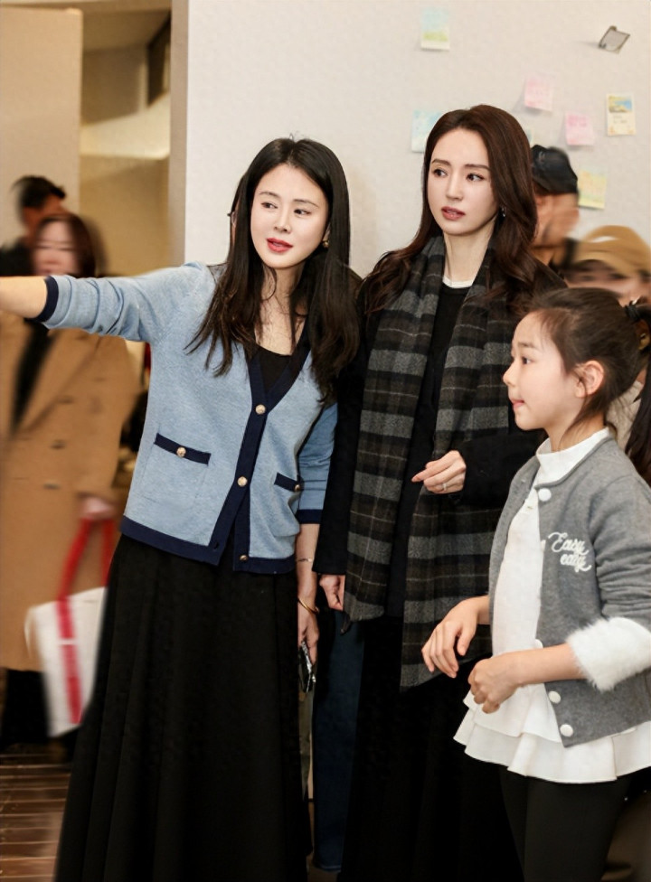 董璇带着自己9岁的女儿小酒窝和关悦佟大为一家见面。佟大为的大女儿身高逼近了175公分,二女儿至少也有170公分了。