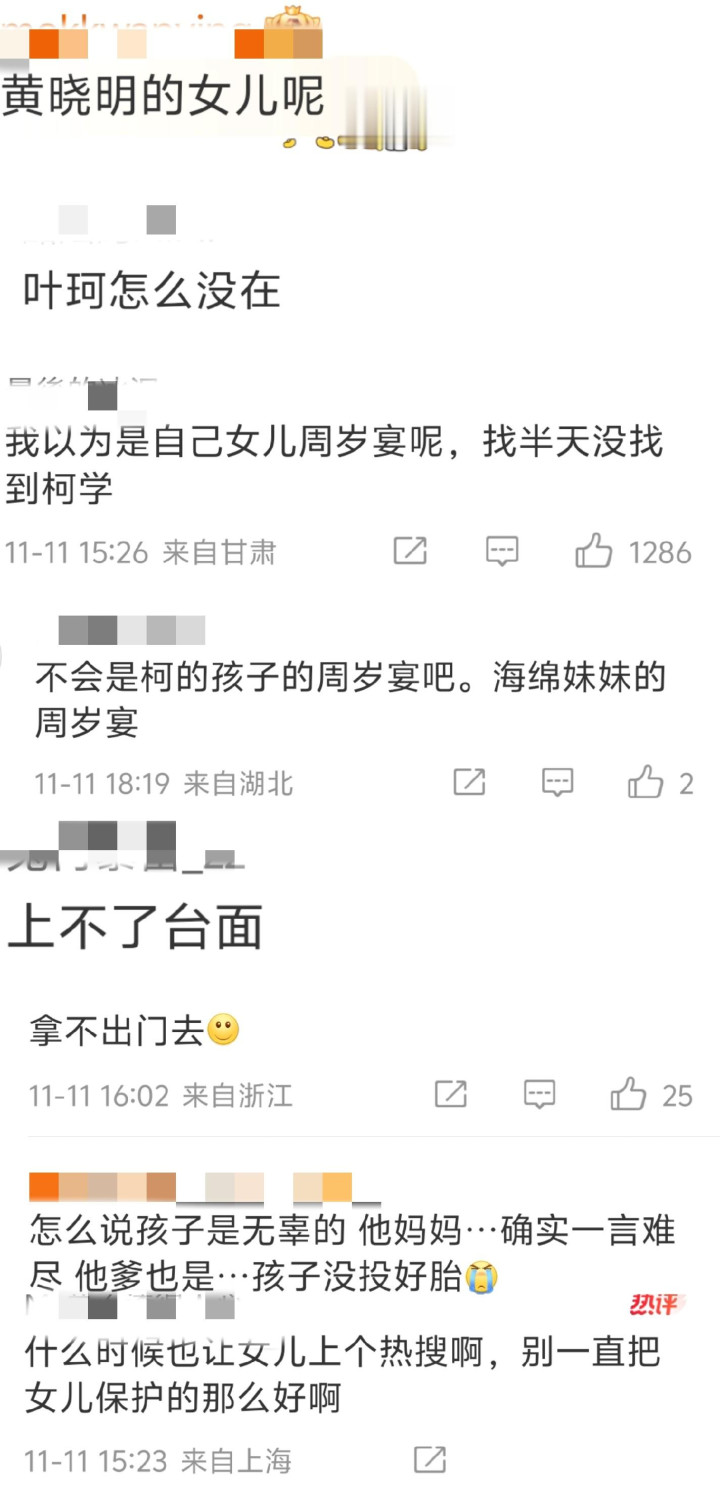 评论区特别搞笑,不知道黄晓明后不后悔承认和叶珂的恋情。评论区都在问为什么不带叶珂和女儿(网传的,不知道具体情况)是实在拿不出手吗?让他别一直拉着小海绵上热搜,把女儿也带上。